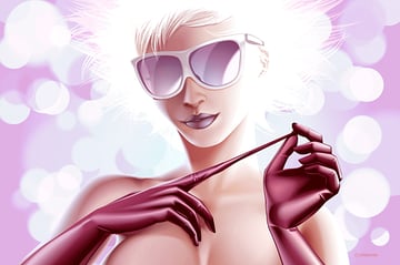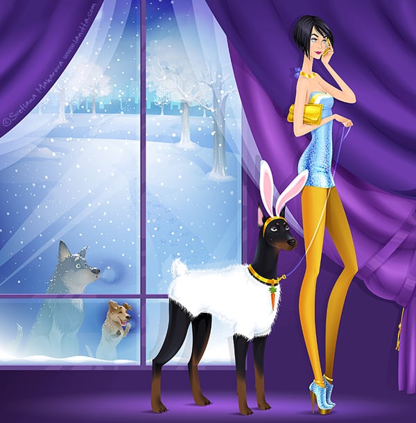 Lanitta specializes in fashion illustration, but from time to time her work is incorporated into a scene or that with a support background. She's not afraid of pushing her fashion characters to the forefront and having the scene around the characters as a frame, nor is she afraid of making her main character just a wall on part like the "Funny Bunny" illustration we have below. She is a versatile artist showing she can do more than high fashion vector girls.