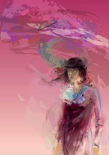 Finally the always inspiring Limkis with her chemistry of feather-blurred, almost stained glass appearance vector art. With her backgrounds she can go from the extreme of incredibly detailed in each and every corner, such as with "Maud," but then can create a fabulous background using negative space and irregular shapes in other works.
