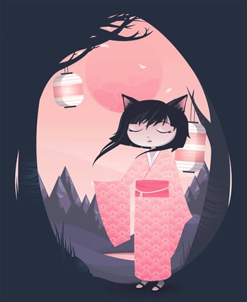 MisterISK's illustrations use a lot of pastel colors, geometric shapes and soft gradients to create charming cute pieces of vector art. These details are then reflected in the background. So although her work has a focal point being the character(s), her backgrounds are a supporting feature without it overshadowing the main centralized character.