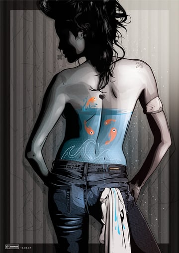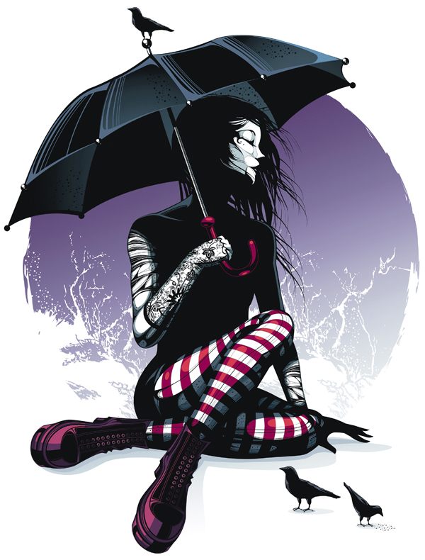 CrisVector uses a more minimalist approach with using organic shapes and lines for his backgrounds. His characters are still the main focus of the illustrations, however we're reminded more of nature in some of the shapes he includes. He possibly uses live trace on some of the more grunge shapes in "Creativity" and "Goth".