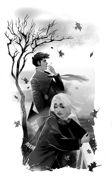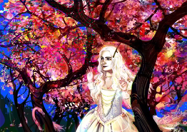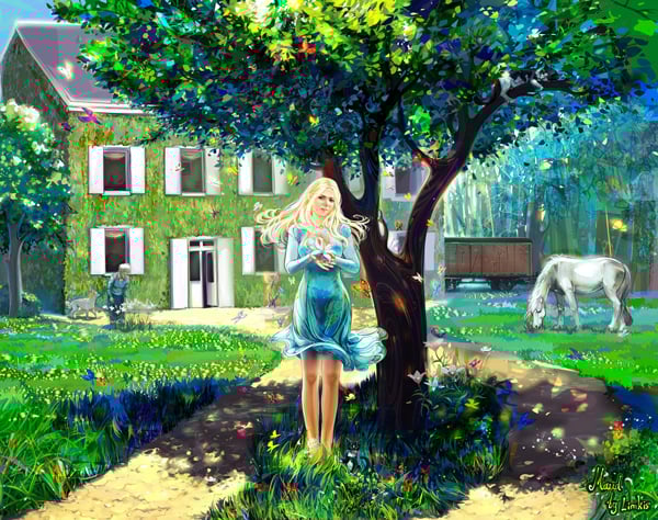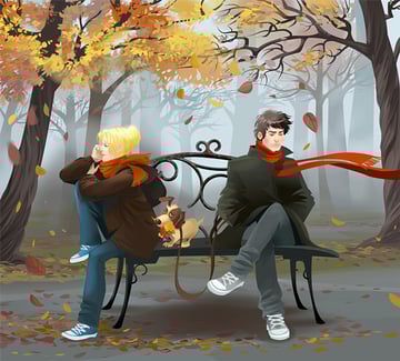 Zzanthia's work is based mainly on the whole scene, rather than a background supporting a character. The whole scene will tell the story, rather than relying on a single character who narrates it. Her "Autumn Stories" pieces show how not only the characters are part of the scene, but how the scene is part of the characters by way of introducing the weather elements into it.