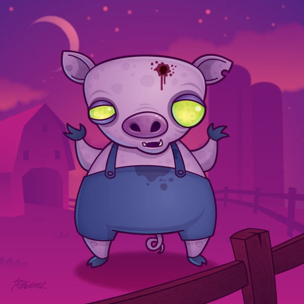 What I love about Fizzgig's work is that his backgrounds contrast and compliment the characters he produces. The use of line art helps emphasis these elements in the character and in the foreground elements, with the background of simple shapes and with good use of blurs to create depth of field.