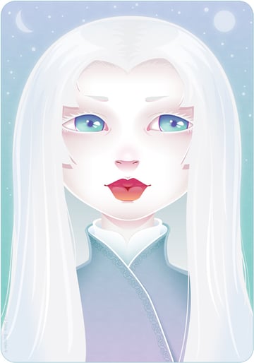 On the flip side, the line art is more central to the rendering of the hair here, as it's of a different color. The shading is secondary and it's not until you look deeper that you see it. The line art here is created by white shapes overlapping a black base, with the smaller shapes created initially by tapered brushes. Color with a Blending Mode Multiply is then drawn over the top to give depth.