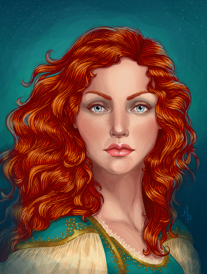 This style is one I do myself, as I find it personally very relaxing to do with a tablet. This is drawing each strand, stroke by stroke. Done with either layering lines with a stroke on top of shapes (sometimes zigzagged shapes) or even just the individual strands themselves. It can be a time consuming style to get into. It works best when the rest of the portrait is greatly detailed, so not one that necessarily would work with minimal shading.