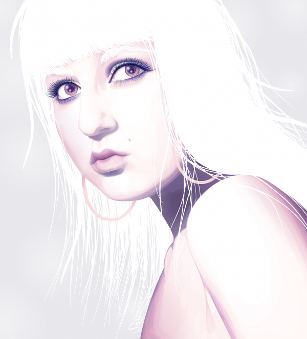 A subtle radial gradient has been used to add shading behind the neck and around the edges of the hair.