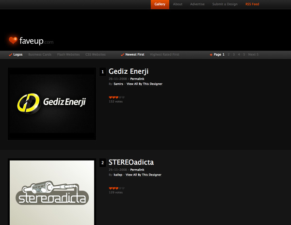 Nonetheless the site has a few things that seem to work well on the site, the main one being that it has a really strong focus on the content. When you scroll down a page, you get design after design, and not much else. It's simple and clear, and that counts for a lot in making a site usable. Here's how the current FaveUp site looks: