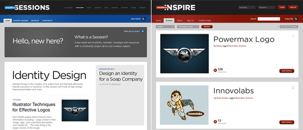Two of the Creattica subsites that we're working on - Inspire and Sessions (a creative skills blog)