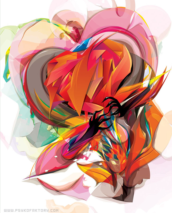 Interesting 3D composition. Good combination of colors. It turns out robots can love. In my opinion he is broken.