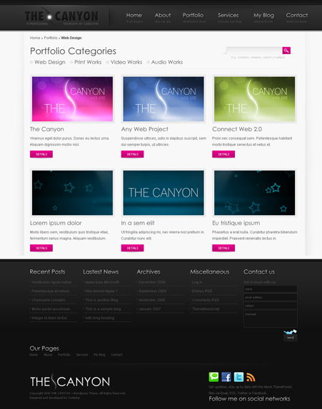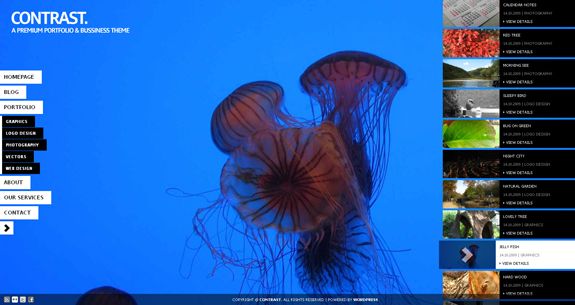 My primary port of call has been ThemeForest, as they have a large variety of professional portfolio designs. After combing through hundreds of WordPress designs, I'd like to share with you my favourite 10 designs, all for under $40 USD each.