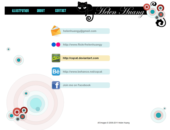 Last, make sure you have all the correct contact information on your portfolio site so people can find you. And it's a good idea to link out to your facebook, twitter, deviantART page, and so on if you have them, so people can follow your work easily and be an active part of your fan base.