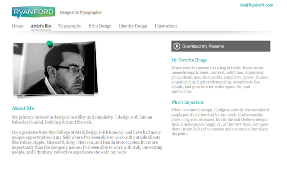 First, know the purpose of your portfolio site. Are you trying to showcase your personality through your artwork or are you trying to attract corporate clients with a more professional look? The design of your site will most likely look very different depending on the purpose.