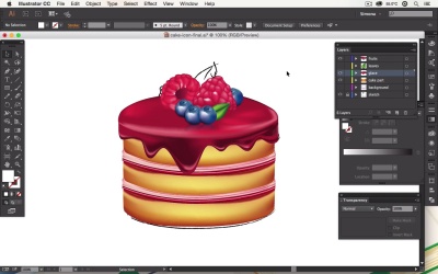 Hello again. This is the course, Advanced Mesh Object in Adobe Illustrator here tuts+. I move just created something really awesome let's have a look right away. Remember when we began. We just had a sketch. So let me show you this is what we've started with. We wanted to create a cake icon here in adobe illustrator with mesh objects. So here we had a sketch that we followed. And we build up our icon. First we created the cake parts. We've created a mesh for our cake. We've created a mesh object for our cream. And let's zoom in here. We've made it look like that the cream is actually coming out on the side. And we added a raspberry filling as well. After that we created the glaze. And as you remember, we created a top part and we created the drips. And those we actually created out of rectangles. Each and every element started from a rectangle that we've turned into a gradient mesh object. And then we've transformed it. After that, we've created some awesome fruits. And you remember, we created some raspberries, blueberries, and some leafs. And here's a bigger one that we've placed in the back. So if I hide all of this again, this little sketch became, in the end, all of this. And then we even created a background. So now this is our final icon that we have, and that we've solely created in Adobe Illustrator with gradient mesh objects. I really hope that you had a lot of fun, and I really hope that I inspired you to use gradient mesh objects much more. And I know some people out there create stunning illustrations. Use a reference photo, play with the mesh objects, transform the lines, play with the handles, and used the eyedropper. It can be really fun to use them and I know sometimes it's hard and sometimes it's frustrating but the more you practice, the better you get at it and in the end you can create some awesome things with gradient mesh objects. So, I really hope you've learned some things about mesh objects here and hopefully I'll see you in the next course.
