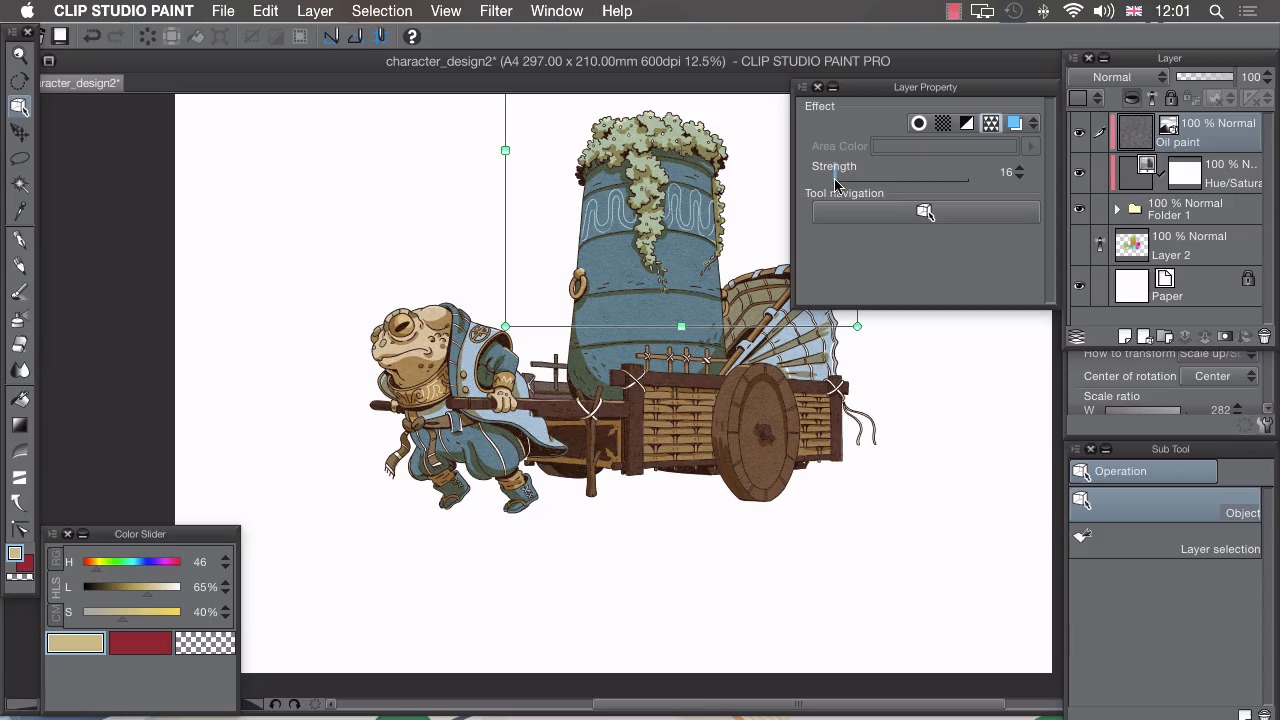 Hi, welcome back. In this lesson, I'm going to show you how to add texture to your images. My illustration is almost finished. But I've got one last thing I'd like to do before I save this out. I'd like to add a bit of an organic feel, and I'm going to do that by adding a subtle texture. I've got a couple of different ways you can add textures, the easiest of which is dragging from your materials folder. To view your materials folder, you go to window, Choose Material, and then you want to go to Monochromatic Pattern. From there, we can drag out any one of these patterns in our library here. So just drag that and it'll create a new layer, which we can then resize like this. I'm then going to add a clip mask, so you can see that makes the texture apply to only this character here. I'll just close this window for now. And then we click on window, go to Layer Properties, and click on this icon here which combines this as a texture. So you'll see instantly that changes our layer into a texture. We can then change the strength of our texture so that the higher I pull this up you'll see the more of our texture affects our image, so I'll do quite a subtle effect, like that. You can also add your own custom images. So, if I get rid of this layer for now, I'll delete that layer, I'll click on File, Import, and then Import Image, and I have a paper texture here that I'd like to apply to my illustration. So if I select that one, press Open, that then opens up this paper texture here. We can resize that as we did the texture that we dragged previously, and again just click on this icon in our layer properties, and that applies this texture on onto our image. Apply a clipping mask, and that will only apply it to our drawing layer. The last way that you can add a texture is by drawing one. So if you add a new layer, we can click on Filter, Draw, and then choose Perlin Noise. We can then generate noise from this dialogue box here. So you can see I've generated some noise. I click OK, I can then clip that to the illustration, change the layer mode, so I'm gonna choose Overlay for this one. And then we'll just change the opacity, and that applies a subtle texture to our illustration. In the next lesson, I'm gonna show you how to export your finished work.