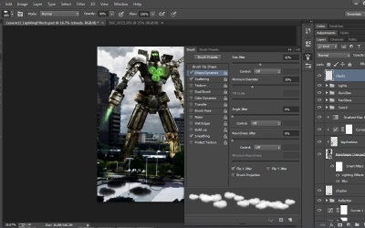 In this lesson, we'll use the background clouds to create custom brushes, and then use those brushes to generate convincing smoke and dust clouds surrounding the scene.