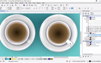 This is the second part of rendering the coffee cup. This includes creating the handle and the beginning stages of filling up the coffee cup. You will make use of the Mesh Tool, basic shapes, and fountain fills to render objects and bring them to life.