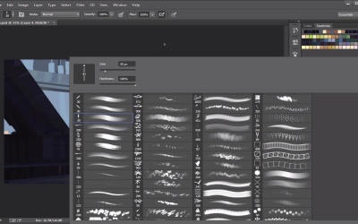 Okay, so let's continue here with adding some more variety and just more kind of interesting stuff to the edges here. So that's what I'm gonna keep doing here, so I'm just gonna use this brush for a little bit. If I wanna get a little bit of variety with some of the edges I can just kinda erase here a little bit, and so I'm gonna switch over to that brush back again and so, now granted I have a lot of brushes here. But that's just because when you're doing environment design, a lot of times it's easier to use a brush than to paint something by hand, so sometimes I have a lot of brushes that are kind of very used for kinda one situational thing. So, but for this, I don't wanna kind of do that cuz I want you guys to kinda understand where I'm coming from in terms of just using simple brushes to kind of explain certain ideas here. So we're not gonna get too much into crazy custom brushes because you don't really need to. If you have the time then go. Do what you wanna do. So wha' I'm gonna do actually is I'm actually gonna change this here at the top of the call dynamics. And I'm gonna add a little bit of a hue saturation jitter, just a tad bit and I'm gonna do that to apply per tips. What that's gonna do is it's gonna actually change the colors every time I make a stroke. And that's gonna be really, really good for getting a little more color variety in my painting, so it's kinda what I want here. So you're gonna kinda see me make some of these little notches, little changes here and let's see if we can kind of add a little bit more here as well. And we'll definitely kind of refine this so we just want the edges to kind of not be so just exact. So you'll see me kinda switch between the transparency, and then not using the transparency. And that's exactly why. Just because I want there to be, I wanna be able to kind of turn things off when I need it and then turn things on. Or turn things off when I don't need it and turn things on when I do need it. So sometimes I'll turn something off, right, like the transparency so I can add more to the shape. But then when I wanna make sure that I get in there correctly, then I'll turn it back on and then that way I don't have to worry about painting outside the value range. So that's kinda what I'm doing here. So, right, you see all these little values here? That's what I'm talking about. That's where things are gonna get interesting. And then after we get all this stuff established, we can start having a talk about color. And texture, a little bit more about texture, I would say, more so than color. And we could start kinda figuring out what we're gonna do, how we're gonna approach it. And there really is no right or wrong way to kind of establish texture. I think at that point it's just more so like, your personal taste, and so I'll show you some ways that I like to approach it. Pretty simple, it will be kinda destructive in a little bit way. But I kind of like it that way too, because it kind of helps keep that painterly feel, so we're going to keep going with that. So I think here, I'm gonna want this to be a little bit more, I want this all to be dark for the most part. I don't want any light values here, so that way compositionally, we kinda just focus on this foreground area. So I'm hoping that this will kind of, this whole little warm to cool thing will make it a little bit easier for me. So I'm just gonna use a regular brush here, cuz it gets kinda laggy sometimes when you're working on a high resolution image. And so I don't wanna deal with that if it all possible, so I'm just gonna do this, right? So we're just gonna block all that in. So that's gonna make my job a little bit easier here. So, and the more I'm looking at it, the more I'm kinda seeing some issues. Especially with like this kind of stuff, so I'm just gonna kinda try to fix some of those compositional things that I see. And [COUGH] I still have the original layer. So I don't have to worry about some things. So I can kinda add some stuff. But I think I definitely want to kind of cut this little piece off like, right here in terms of the shadow. So that way I just have more to work with in terms of the light. So you can kinda see that decision I'm making right here. Which is kind of important here cuz I wanna paint stuff, but it needs to feel interesting. So, let's actually go back in here and let's add those values in. So, and at some point, because I'm switching back and forth so much to the light layer and then the dark layer. There may come a point where I just merge it all together, just cuz it might be a little bit easier. So let's kinda watch out for that, cuz that might happen sooner rather than later. And that's kind of a choice that I have to make whether I think that it's hindering my creative process. And if I feel like it is, then I have to kind of make that decision now, so I don't worry about it. Okay, so here we're kind of, I'm just kind of erasing in certain little areas here. And then I'll go back in and I'll block them a little bit. And this is kind of nice cuz now you can kinda add some irregularities. So I'm just using a lasso tool here to kind of, I have little stones and stuff, all those kind of things. If I really wanna be quick about it, which I kinda do, I could just use my shape tools, because in my shape tools, I do have some little stones here that I can place and those will serve as little ways break up the kind of squareness of the image, and that's always a good sign too. So you can do some stuff like that. So I'm just gonna kinda fix some of these edges here. I'm just gonna keep refining here. And this is kind of important, because this stuff has to be kind of exact. It just makes me feel better about the situation if I don't have to worry about those things. So I shouldn't have zoomed in, I kinda made a mistake there zooming in, but we'll live with it. And let's go back to one of these brushes here. And let's just see what we can do with some of 