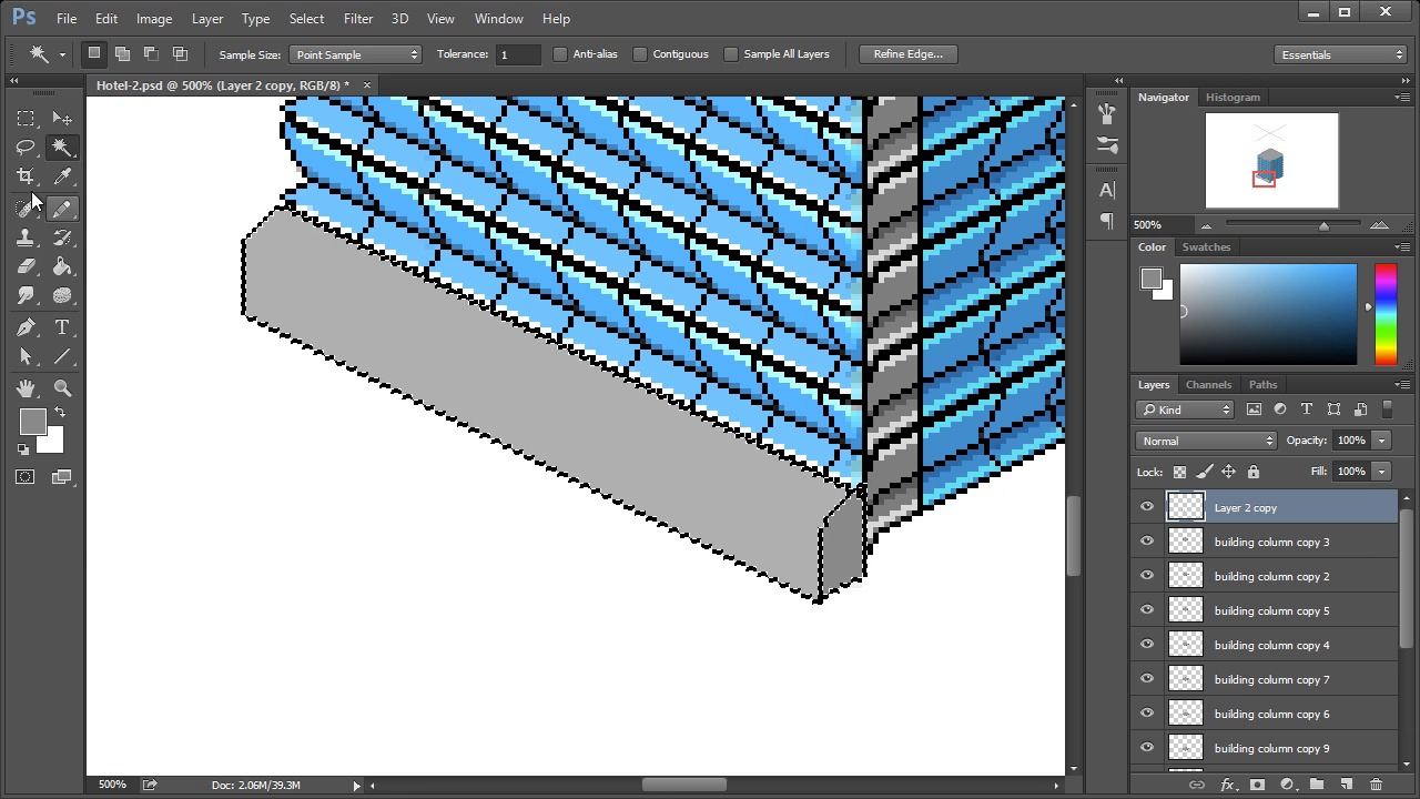 With our hotel column now finished, we will replicate it in order to create two hotel buildings as well as an entrance.