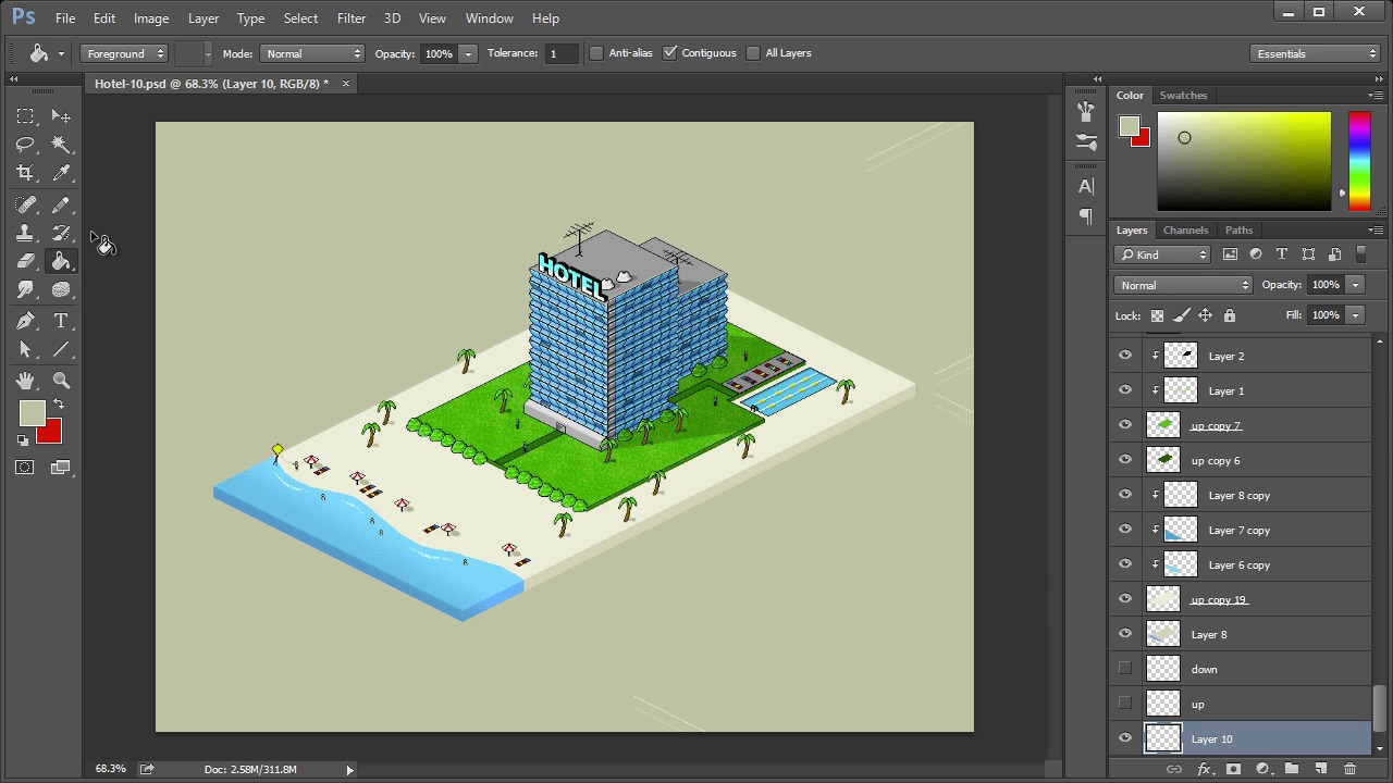 In this lesson, we're going to finish up the project by changing the background and giving the entire isometric project a 3D appearance with a shadow.