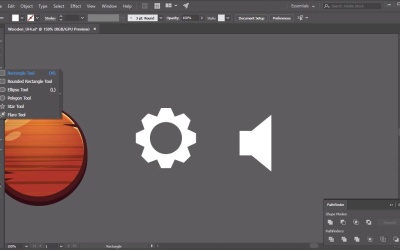 Hi everyone and welcome back to the Game UI Course. In this lesson we're going to go through how to create some buttons for our UI and how to create the icons for them. So to begin with let's start by selecting our button. So this is the button that we're going to use, and we're going to place some icons on top of this. So just as a starting point I'm going to copy the whole thing and I'm going to paste it over here. And we're just going to work separately. I'm just going to use this as a rough size guide for our icon. So the first icon that I'm going to create is the Settings icon. And we're gonna do this by first of all selecting the Ellipse Tool. So let's start by drawing out a perfect circle. Again holding Shift and then clicking and drag to bring out the circle. And then, I'm going to change this fill into a stroke. So I'm going to bring up the stroke points up a few notches. So let's see that should be okay, let's bring it up a little bit more. We can always change the stroke size later on. And then I'm going to use the pen tool. Let's just zoom in here a little bit. I'm going to create a little notch here for our settings and then I'm going to duplicate this. So that's Ctrl+C, Ctrl+Shift+V and transform reflect on the vertical axis. Just gonna move it over here. And then if you wanted to, you can use the pen tool and then just connect the two anchor points like so. All right, now to ensure that this is all in line with everything with each other, let's select both of these, go to the aligned tool. I'm just going to do a horizontal alignment, just to make sure that they are all in the center. And now for this part, I'm gonna make it into a fill like that. So just bring it up a little bit. And then make sure that it's all in line with each other again. And then for this stroke here, starts to get the feeling that it's a little bit to be thin so what you can do here is, you can actually go to the stroke panel and you've got all these stroke options here. And I want to bring my stroke inside the circle like so. Just to bring out this element here a little bit more. Right, so now we've got our first piece. I'm going to group everything together. And then I'm going to duplicate this as well. So Ctrl+C, Ctrl+Shift+V. And now for the top shape I'm going to reflect this time on the horizontal axis like so. So now you've got two parts, one bottom and one top. We're going to try and align the two together like this, Making sure that everything is centered. I'm going to group And now what you're going to have to do from here is copy, control-shift V, and now I'm going to transform, rotate by 90 degrees. Now you're starting to see that your cog is starting to take shape Let's do the same thing again so group everything, control C, control shift V. Now I'm going to transform and rotate, let's say by about 30 degrees. Not quite. Let's try 45 degrees. There we go. So now we have our cog shape. We can group all these together. And what I like to do from here, if we zoom out a little bit, let's see if it fits over our button. It fits there quite nicely. Let's go ahead to object, expand appearance. And then from here we're going to go to our path finder tool, and unite. So that sort of makes everything into one nice solid shape. So that's our cog for our settings. Now we're going to make a volume icon. So the volume icon is made in pretty much a similar way. We're gonna start off with a rectangle tool. So size this up. So let's do a small little rectangle. And then another, in fact let's use the pen tool for this, so let's make this part of the micro phone here like saw, just the first half In fact let's bring this over, Now let's bring the anchor points over like that. All right, so now we've got the first half, group that, Ctrl+C and then Ctrl+Shift+V. And then we're going to reflect the first layer. And move it into position, like that. So, now that we've got a microphone let's unite the whole object. I'm just going to pull these two anchor points out little bit, like that. And now we're going to make the sound waves. So, the way that I'm going to create the sound waves is by using the ellipse tool. I'm going to make that into a stroke. Let's say about ten points. And I'm going to make another circle, so let's duplicate the circle and then bring it up a little bit. So we're sizing it up and I'm going to use the alignment tool, make sure they're both aligned with each other. So both center points are exactly the same now. And now I'm going to use the direct selection tool to delete half of the circle, so I'm clicking on the anchor point, delete, clicking on this anchor point, delete. There we have our sound waves. Just sizing this up so that it fits with our icon. And so I'm gonna group these together and make sure that they're aligned in the center, like so. All right, so now that we've got two icons In fact let me just expand these first. Right, so we've got sound icon and our settings icon. What I'm going to do now is we could place these icons on top of our person and that would look fine. However, I'm going to make a little bit of changes, a little bit of adjustments to these icons to make them look like they've been embedded into the wooden icon here. So let's zoom out so that we can go to our palate again. I'm just going to move our palate close to where our working area is. I'm going to duplicate these two icons, so we can keep our Y icons just in case we want to use the Y icons in the future. And let's go ahead and change the color of these icons to this color here. And what I'm going to do from here is if we place one of these, in fact, let's make both buttons. So we're going to duplicate this. Line these both up, whoops. So let's make sure that this is group. Now lined them up. So we got our settings and our sound icon. Yeah like so make sure that they're in the middle. All right. So, now we're going to duplicate the icons, moving them up just a little bit, by maybe 2 pixels and then by