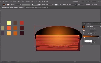 Hi everyone and welcome back to the Game UI Course. In this lesson, we're going to go through how to create some shadows and highlights for our wooden board. So in the last lesson, we went through how to create the wooden grains and also how to chop off the excess wooden grains from outside of our wooden board. Now let's go through how to create some highlights. So you can see here that I've got these two colors here and some of these colors here to create some highlights. I'm just going to quickly create some rough highlights up here. So to do that, let's select our bottom wooden board, Ctrl C to copy, Ctrl Shift V to paste. And I'm just going to bring it down, like so. Just going to, in fact, let's undo that. I'm going to copy two of these. Bring the second one down, select both of those. And over here, we're going to go back to our intersect button. Nope, let's go back to our minus front button. Now we've created a quick shape here. Select that shape. And I am going to select one of our colors here to create a quick highlight. Now you'll see here that we've got some unwanted shapes. I'm just going to quickly select those with our direct selection tool and delete them away. Then we'll do exactly the same trick. We've got some artifacts here as well. In fact, I'll just leave that. It doesn't really show much. So we'll do exactly the same trick again, we're just gonna select this shape. Control C to copy. Control Shift V to paste two of these. Put the second slightly on top of the first. Then I'm going to click the minus front button and I'm going to select a brighter color here on top. Whoops. Like so. So now we've got our top highlight for our board. I'm also going to use these gradients as well. So to do that, let's create a ellipse tool. And cover our entire board or half of our board with that. Now you can see here that I've got this on a separate layer, so let's make this all one layer by grouping it. And now, using our ellipse tool, let's cover that up. And I'm going to select my gradient. Now this gradient has several properties, so you can change the gradient colors here. Like so, so just double clicking on that and changing the color. So you've got your bright color in the middle, on the left, and your darker color around the edges, on the right. Now we've also got this fade gradient set to screen. Okay, which gives us this sort of nice glow color effect. And if we go over here to our gradient tool, we can also change the way that our gradient works. So we can stretch it out, Bring it back in. And also move around where our gradient is, so where our color is. And let's just give it a soft, a soft light here like so. And in fact, because we've got these artifacts on the edges, we're going to need to cut that. So let's select our bottom frame again, Control C, Control Shift V, and we're going to do our cutting trick. So make sure that you've got both of those shapes selected. Go over to pathfinder and it is intersect. Now that we've got this shape, let's do that again and now we can change our gradient to the way that we like it. Like so. So that is one way to do a highlight. I am also going to add some quick little bubble effects here to give it a more stylized look. So let's create one here. Using our ellipse tool, bring it to the corner here, like so. And then, let's Ctrl C that. Create another small one over here. Let's make it a little bit thinner. Now again, what we have to do is use our cutting trick. So selecting our bottom board. And now you've got some highlights here. Now with these ones, I'm going to want a slight opacity with that. So that you can see with this, if you go over to transparency there, it's set on 39, so let's go down to 35. And there you have it. So that's how we create some quick lighting effects for our wooden boards. In the next lesson, we're going to go through how to create some different shapes. See you all there.
