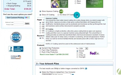 With your PDF ready to go, it’s time to see what’s available for printing. I’ll walk you through ordering your business cards with a standard online printer and explain the difference between paper options, gloss or no gloss and pricing.