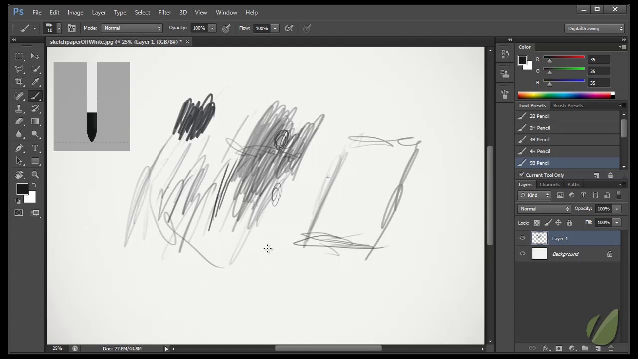 We’ll discuss how to hold the stylus for the best drawing results and how to setup a custom Photoshop workspace and get started with a drawing surface. Bonus Technique Tip on using selections.