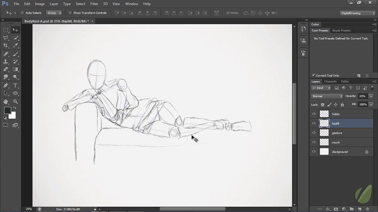 How to work with the restful, reclined poses for lounging figures.