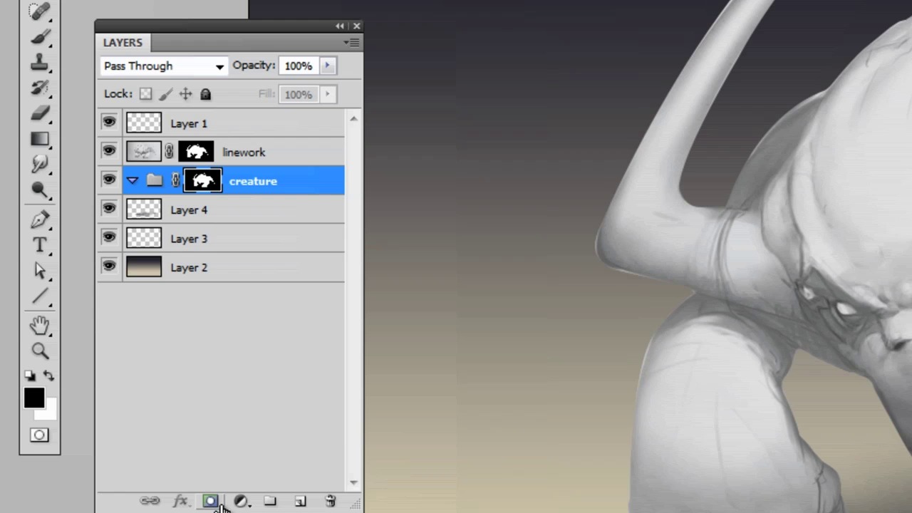 In this video we’re going to drop in a quick background to give the character an environment, and then we’re going to use the power of masks to paint the main fur color.