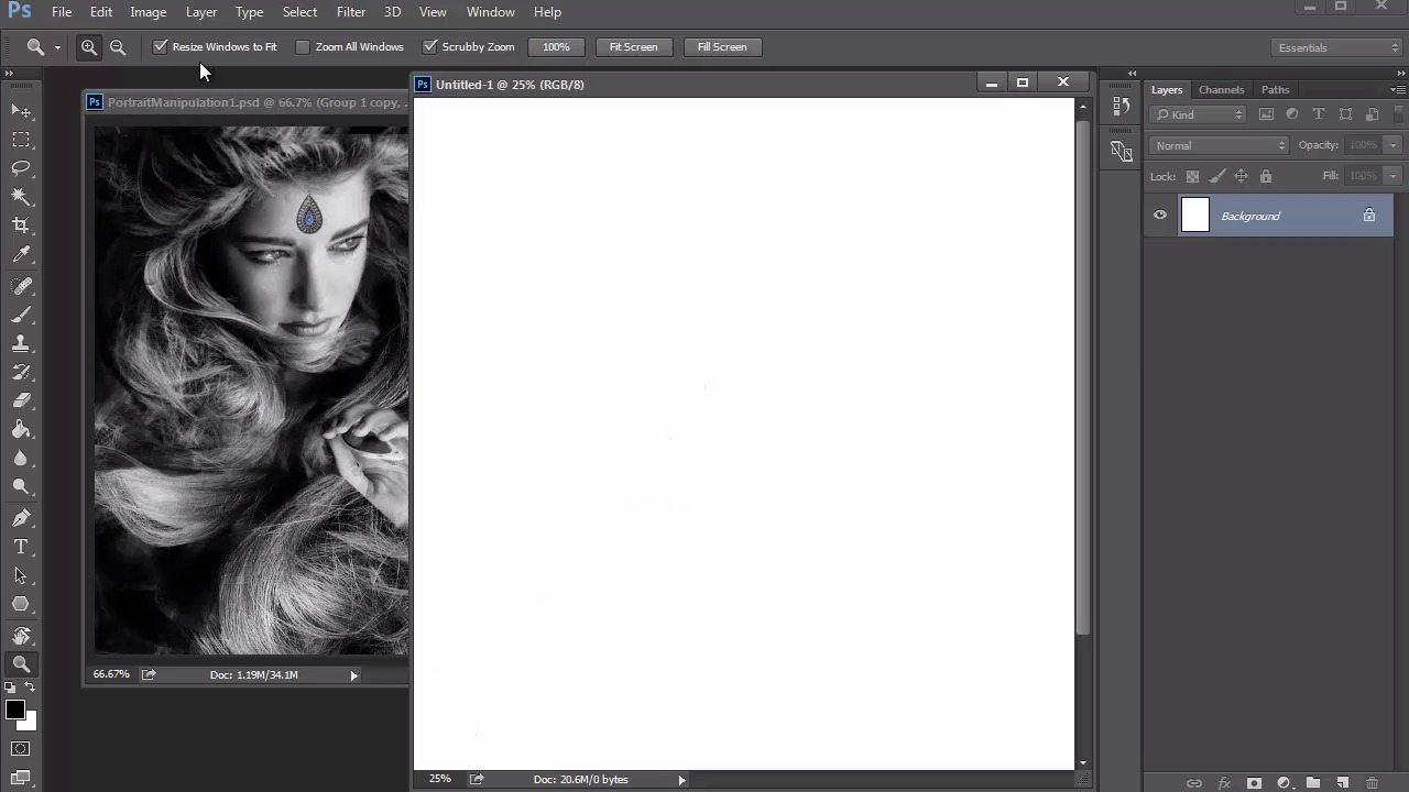 Hello, and welcome back. I'm glad you were able to join me. This is Chapter two, lesson 2.1 of Fantasy Digital Portraits. My name is Melody Nieves, and we'll start off this course by first assessing everything we'll need from the software to the brushes we're using that'll be perfect for any digital painting. To complete this course, I'll be using Photoshop CC. As dynamic as Photoshop is, you can really use whichever version you currently have. You'll still be able to create beautiful digital portraits, but there are many benefits to the upgrade. Since the Creative Cloud version allows you to keep up with regular updates, you'll be able to utilize newer presets and settings that are perfect for digital paintings. And despite misconceptions, one of the biggest issues everyone runs across no matter their difficulty level is not necessarily a lack of knowledge or understanding of our principles. But rather how hard it seems to be able to create digital art in the first place. Since the software can be rather intimidating on its own, I would certainly recommend that you have basic knowledge of Photoshop to make your life much easier as you follow along with this course. You'll also need a reliable graphics tablet. So long to the clunky movements of a regular optical mouse because graphics tablets also known as pen tablets. Allow you the control and ease of painting with a pen stylus in the same manner that you would hold a paintbrush or pencil. I'll be using a to complete this course, which will help me enable certain brush settings specific to using pen pressure. Before we discuss more about those brushes, let's first talk a little about our workspace. In my previous course, Digital Portrait Painting and Adobe Photoshop, you learned the many benefits of using limited panels and painting side by side to your reference. For this course, we'll be doing the same. To save on space, the most important panel I'll need is the layers panel. So I'll keep the others hidden away or closed out until I need them. For both portraits we'll be working in either 9 by 12 or 8 by 10 inch dimensions, respectively. Always keep the resolution at 300 dpi to retain impeccable quality when painting. And the only real difference here is that I've made the female portrait slightly smaller at eight by ten inches for compositional purposes. In the next lessons, we'll be able to go over the photo manipulation aspects of this course. But for now I do want you to see that each manipulation is conveniently placed next to the document to achieve better likeness because they're right next to each other, there won't be as much of a delay in trying to remember the details that you're painting. And here's a quick tip, if you want to keep both windows still while zooming in and out of your paintings or references, make sure that the boxes are unchecked for resize windows to fit, and zoom all windows. If they remain checked, your windows will automatically change sizes, and become a super annoying problem. Since you'll have to constantly resize them manually, in order to see both documents, side by side. Now that we know our workspace setup, let's move on to brushes. Instead of making custom brushes, we'll take advantage of the lovely brush presets that already come with Photoshop CC. You can make any digital portrait incredibly dynamic. Because these brushes are already customized to various strokes and textures hit F5 on your keyboard at any time to bring up the Brush panel. If you select Brush Presets, you can see the brushes you have available, as well as a preview of the type of stroke you can expect. The main brush we'll use is a hard, round brush with pen pressure sensitivity enabled for flow. To me, this is the ultimate brush. Not only of the strokes clean and fluid. But the heaviness of your stroke is a direct reflection of how hard you press on the keyboard. Resulting in a beautiful traditional feel. During this course you might also see two variations of this brush. The first is placing a check mark next to sheet dynamics and enabling pen pressure to create a nice tapered end. We'll use this brush for sketching in our later lessons. In the second variation, I disable both the Transfer and Shape Dynamics to have a regular solid brush perfect for filling in base layers. It's also a good idea to keep in mind that varying your hardness can have a huge effect on your painting. For the most part, paint with hard brushes in the realm of fifty to one hundred percent hardness. But if it comes to a time when you need something softer for blending or atmospheric details, feel free to create a much softer brush at one to fifty percent hardness. It's also great to have a few textured brushes in your arsenal. By using these brushes, not only can you improve the overall realism, but they also at a nice variation of texture to your pieces. For these textures we'll be using a dry brush, oil pastel brush, a chalk brush and an airbrush soft high density grainy brush. After making a couple of test strokes, experiment with these brushes and notice their textures. The Dry Pastel and Chalk brushes have similar textures that resemble their tradition art influences. These will be great for that painterly feel I often like to go for. The grainy brush also creates a great textural effect. You can continue to adjust the settings for these brushes for the look you're going for, but for the most part I prefer them as is. Because I don't need them for the duration of this project, we'll just place them on the back burner temporarily until we want some unique detail that we can't quite get with the normal, smooth brushes. Now that we know what we're working with, it's time to figure out what we should paint. To answer this question, I'll give you my best advice for the research and development of strong concepts to ensure your paintings are more memorable and impactful for any audience. Join me in lesson 2.2, where we will tackle this subject. And div