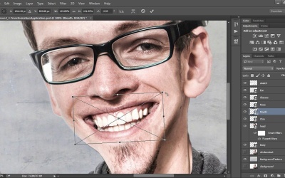 In this lesson we will work on fitting the caricature elements together by using the different warp tools.
