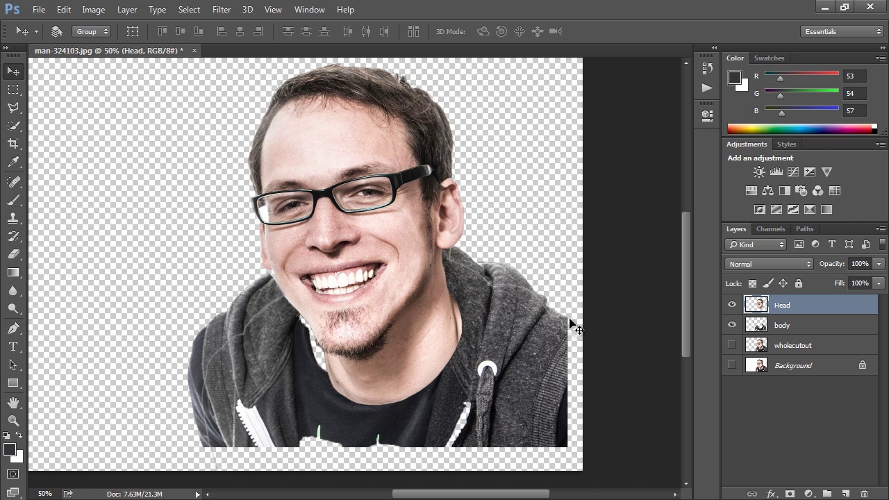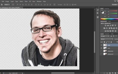Here we'll use some basic selection tools to isolate elements of the portrait and transfer them to individual layers to use in the caricature.