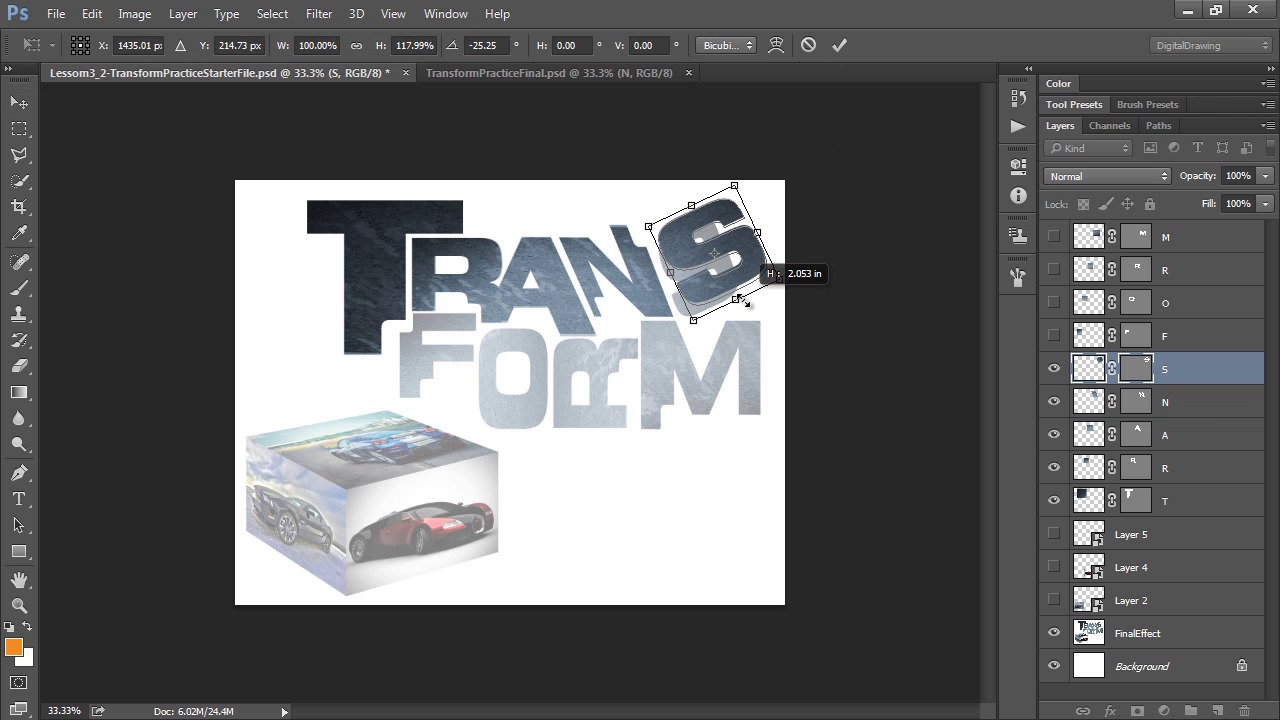 It’s time to try your hand at using the transformation tools. In this practice project we will work to create a hand-lettered title.