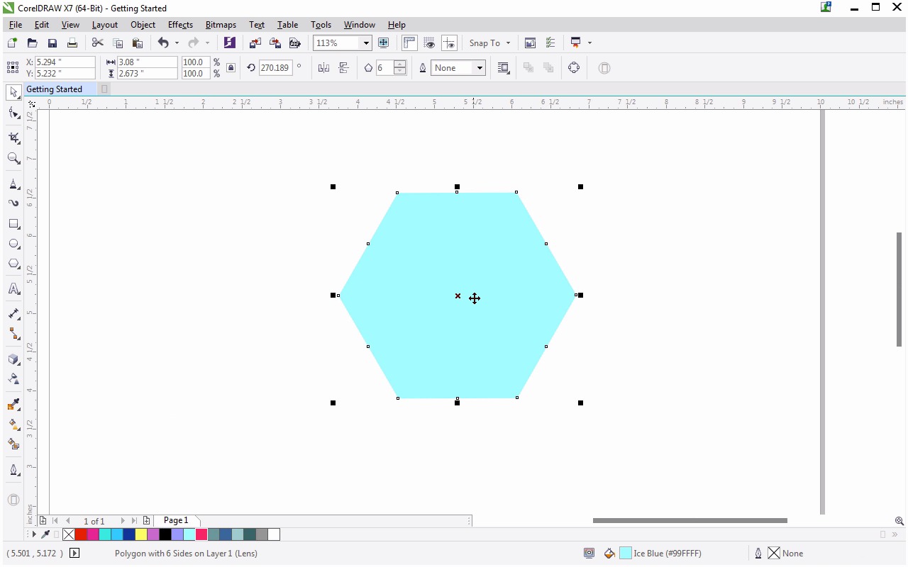 Welcome to getting started with CorelDraw. I am Mary Winkler for Tuts+. In this lesson we'll check out some of the color and attribute tools in the toolbox. Draw a hexagon with the Polygon tool. Use the Pick tool to select the shape, rotate it, select it again, and scale it up. In the toolbox, select Edit Fill to apply a new fill color to the object. When the Edit Fill box pops up, select Fill and choose your color. I've chosen a bright blue, hit OK. You can edit the objects outline either under Pen outline in the tool box or in the property bar. The next tool is the Transparency tool. This tool allows you to partially reveal areas underneath your object by allowing you to adjust your object's transparency. The default for my tool is a transparent fountain fill. Click and drag the tool on your object to get a feel for what it does. You can move the fountain fill over and away from your object, or adjust its sliders to change the attribute. Adjust the level of transparency either with the tool or in the property bar. You can also change the style of fountain transparency: linear, elliptical, conical, or rectangular. Switch over to elliptical, and notice how you can adjust the width and length of the ellipse itself, as well as where the fountain transparency exists within the ellipse, and how to change throughout the object. Switch to conical fill, and you'll find similar controls. The same goes with the rectangular fill. All four options have interactive features, as well as some controls within the property bar. THere are also options for uniform transparency, pattern transparency and blending modes. The uniform transparency actually allows you to adjust the object's overall opacity quickly and easily. We'll explore patterns and blending modes later in this course. You can check out some of the default pattern options now if you wish, or choose to move on to the next tool. The next tools are the Eyedroppers, Color Eyedropper and Attributes Eyedropper. Duplicate your object and recolor it. The color eyedropper copies the color of one object onto another. Select your first object with the color Eyedropper and then select the second object. Use the Interactive Fill tool, shortcut G, to apply a linear fountain fill to the first object. Change the fill color as you see fit. The attributes Eyedropper copies an object's attribute onto one another. Sample the first object with the attributes Eyedropper, and place them on to the second object. This is especially useful when you are creating a series of like objects or want to quickly change multiple objects to match each other. Now that we're using the Interactive Fill tool, you'll notice it's quite similar to the Transparency tool and holds many of the same options, especially where fountain fills are concerned. Linear, elliptical, conical, and rectangle fountain fills are all options with this tool. You can also choose fills from Corel's content exchange which may take a bit to load depending on your machine or to find your own fill. Play around with the Interactive Fill tool, adjusting the style, colors, and attributes within the fill itself until you're satisfied with how to use it. Now for our final tool. Change the color of one of your objects and use the Pick tool to overlap them. Using the Smart Fill tool, select the intersecting portion of the objects and fill it with a color. Use the Pick tool to move one of the objects and try it again by overlapping another portion of your first object with the second. Fill an intersecting component of your objects and change the fill color so the new object is distinct. Any object you fill with the Smart tool will create a new object. You can specify the fill and outline options in the property bar. Create all sorts of interlocking designs with the Smart Fill tool, or a variety of shapes from overlapping others. This tool gives you fantastic interactive options for shape building, pattern making and assorted graphics. Thank you so much for watching this short lesson on some of the color and attribute tools. In the next lesson we'll check out the connected tools found in the toolbox.