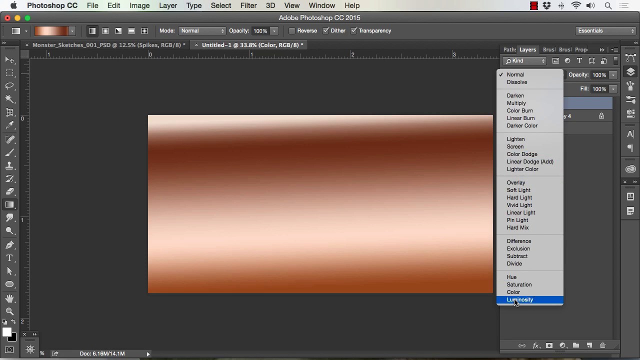 Welcome back to how to create monster in Adobe Photoshop brought to you by Tuts+. I'm your instructor today, Robert Morvillo. Will now be covering less than 2.1, Understanding Layers and Brushes. Okay, so now I want to talk to you about layers. Layers within Photoshop are very important for creating any type of artwork, but especially for the artwork we're going to create here. So, if you see, I've got these three monster sketches on a separate layer from the background, that's the way that I like to work. You can get to your layers right here and you can also go to Window > Layers here or F7. There's usually a couple ways to get to everything you need inside of Photoshop. All right so I'm gonna add a new layer by simply clicking here And you can name that layer by double-clicking here and I'll just call this Effect1 for lack of a better term. Okay, and I can hide that if I want more real estate on my screen here. Now the first thing that I wanna cover about layers, because layers have a lot of importance to what you can do in this. But the first thing I wanna cover is how to apply and manipulate effects, so we'll say, for instance, on this monster in the middle here. And you could see, if I zoom up, he's just really blocked in, that's a method that I use to start creating the art. So, I'll say that I wanna add some spikes on the top of his head. Now to do that I'll simply use my layer effect. I'll create some sort of spike, I'll do that by drawing a selection. Something like that. Keep in mind I can add to the selection by selecting this key right here or holding shift. If I hold shift, it'll put a plus sign next to the selection and I can keep adding to it. Alt will subtract like that, so those are basic selection of our spike. I'll just go ahead and fill this with a color. Start off with a dark black. I'll Cmd+D to deselect. I'll use the layer, I'll lock transparency right there. See it puts a lock right to the end of the layer there. Click off of that and now, I can paint freely inside this quick little design I made. So I'll just start off with a soft brush and just paint in some light and dark there and I'll grab a chalk brush here. Just painted some texture. Something like that, just to give us something to work with to add to our character. So what's nice about layers is I can do all of that really quickly and I'm on a separate layer. I can hit Cmd + T or Edit > Transform, hold Shift. I can scale that down. If you don't hold shift it'll just distort it which is fine too you can just distort in the place and then, now I could add that spike. Let me zoom in here a little bit, I can add that spike to our character here. And another kind of neat and quick thing that you can do as you can hold Alt, as long as you are selected on your move tool here. You can hold Alt and copy here, if you want your layers, you'll see that i interactive did another copy there, when I moved it over. So that's really, really a neat feature and it's something that allows you to move really quickly. You don't have to go in here and keep opening up your layers. A lot of times I'll leave this closed and I'll move this around into place I'll know that I hit. If I hit Cmd+E, it just merge those two together. Cmd+T to move them again, kinda resize them, re-distort them, whatever. And say I want to another spike right back here, but a little bit smaller. I could take the Selection tool, select around it, Cmd+C, Cmd+V, hit V for move. So it brought me back to my move tool. Cmd+T and resize down, so all that I was able to do, hit Enter to lock in the transformation. I was well able to do that really quickly and not jump in and out of the layers tool section here. Now once I get it into place I hit Cmd+E, I could double click here and just call these spikes now to make a little bit easier to discern from one from another. And now, I've got spikes that I can set in and around this character's head, I can hold Alt again, drag them all over, hit Edit > Transform> Flip Horizontal. And I've got spikes on the other side and I just go spike crazy and start putting him everywhere if I want to. But also the more important thing to keep in mind is when you do things like that ,I can play some of the each character. So if I get something I like, then I would save out that layer and be able to utilize it all throughout my work. Now let me go ahead and show you what I mean about saving that out. So say, get the spikes the way that I want, I put a good amount of time into making them look right. These are obviously very basic and they need a lot more work to be ready to incorporate into a painting or whatever. But say this is what I wanted and I can simply go here right click go duplicate layer. I can click new right here under document I could name it. I'll just go ahead and hit OK for now. Now what it's done is it's recreated the document at full scale so it's entire window With the same resolution, same size spikes. So I've got a couple options here. One of the things I like to do is take the spikes themselves, or whatever element I'm trying to save. Scale it to a decent size. I always like to be a little bit on the larger end of the resolution and scale so that I can downsize it but if I need to use it for a larger file, I've got plenty of resolution to work with. But you also don't wanna get in the habit of storing really large files all over your hard drive if they're not necessary. So, we'll zoom into this spike artwork, and you notice if you get really close it's still really clean, and that's subjective to what using it for but I think this will be fine. So say I needed to save these I can now select around them, go Image > Crop. A lot of times I'll set up a background layer as a separate layer, just so I can see the design a little bit better, so maybe something like that. But I do keep the layers separated, so I I have more ability to edit and then I'll save that. The one last thing to keep in mind, it's really basic a