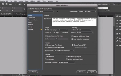 Welcome to the final practical lesson of the course. After InDesign gives you the green light in Preflight, you're ready to explore your artwork as a print-ready PDF. If you're planning on sharing your proposal over email instead, this is easy to do. So I'll just show you first how to do that. You might even want to provide people with a digital copy as well as a print copy, so they can have it at hand on their laptops or tablets. So, the first thing to do is to head up to File and save your document. Then back into the File menu and choose Export. You can name the file, and then from the Format menu at the bottom, choose Adobe PDF (Interactive), and click Save. Because we want readers to see two pages at once as you would in the print copy, make sure Spreads is checked. You can keep the other settings as they are, unless you want to add fancy page transitions or anything like that. From the compression options, you can choose the quality of the JPEGs in your PDF. So we might want a high quality. But we might also want to bring the resolution down to 72, which is the usual resolution for screen viewing, to help save on some space in the file. And then when you're ready, click Export. You'll get a warning message about converting same white colors to RGB for interactive PDFs. But generally, this is not going to be much of a problem, so you can click OK. And this interactive PDF can be attached to an email, or you could upload it onto your website, or something like that. Okay, so really we've designed this proposal with printing in mind. So let's look at the process for exporting this artwork as a print PDF, which is a bit of a different process and needs a few more steps. So as we did before, go to File > Export. And this time, choose Adobe PDF (Print) from the Format menu, and click Save. Okay, so we've got a few more options to deal with here. From the top preset menu, you're going to want to choose Press Quality, which is going to give you the highest quality for your PDF. Under Pages, make sure All is checked. And in contrast to the interactive PDF, you want this print PDF to be exported as individual pages, because the document is going to be bound together after printing. So make sure Pages is selected, not Spreads. The next thing to check is the Marks and Bleeds option, so click on that in the left-hand menu. Different printers prefer different things, but generally, it's pretty safe to check All Printer's Marks. But you can check with your printer beforehand whether they want things like the Color Bars and Registration Marks. And under the Bleed and Slug section, check Use Document Bleed Settings. And you'll see here that because we set the pages to not have a bleed on the inside edge, InDesign's remembering this and setting this to zero inches. And that's it, so once you've added the bleed to the PDF, you can go ahead and hit Export. Awesome, so you can really see the quality of this PDF. The images are really crisp, and the colors look great. So you can send this document straight off to the printers. And it might be helpful to print off a basic mock-up of your document for them, so you can show them exactly how you want the pages to be arranged. And then you're going to end up with a box full of wonderful printed proposals which are ready to send off to your clients. And I'm sure they're going to be really impressed. We've very nearly comes to the end of the course. And one thing I just want to leave you with is that you can download the final PDF of this proposal artwork which is attached to this lesson. So you can take a good look at how I've arranged the design. And hopefully, this will give you some help and inspiration for creating your own proposals in the future. Make sure to stick around for the next and final video of the course, during which we'll take a recap of all the print design techniques that you've picked up during the lessons. And we'll look at some suggestions for how you can develop your new skills even further.