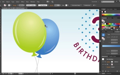 In order to reinforce relevance, we will design some custom party graphics using the Pen Tool. We will design balloons, bubbles, and other party frills.