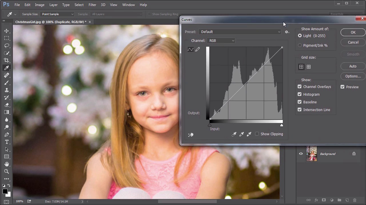 Hello everybody, welcome back to mastering blending modes in Adobe Photoshop. This is lesson 7.2, where we look at a practical application for some of those component set blending modes. In the course files for this lesson is this Christmasgirl.jpeg file. I really enjoy this shot. This is an adorable little girl in front of her Christmas tree but I think this could benefit from a little bit of a soft focus technique. And that's what we're going to use one of these components blending modes for. First of all, we'll start by making a copy of this background layer. Again, calling this the duplicate and changing it to a smart object. Now I want to zoom in just a little bit, so you can see what this effect is doing. Let's start by changing the blending mode of this duplicate to luminosity. Now you don't see much of a change there at all, do you? That's because it's the exact same layer, so the luminance values are no different between these two. Let's run a black and white adjustment on that smart object. We'll use the onscreen adjustment tool to really pull up on some of those highlights and down on some of the shadows. The mid-tones we want to brighten up a little bit too. We don't really see too much of a change now, we're brightening things up a little bit and that's good, that's well on our way to what we want to do. Let's add a bit of a blur now. Filter Blur, will use the Gaussian Blur and just use a one pixel blur. That's already starting to soften things up for us. But then let's use an Image > Adjustments > Curves adjustment to brighten things up just a little bit more. I'm going to add a midpoint to this curve. Just pull it up, just a little bit. Now this is already adding a pretty convincing soft focus effect to it and I think it's already an improvement to this photo. But let's push it even a little bit further. Let's go to Filter > Lens Correction > the Custom tab and then add a lighten Vignette to it to lighten those corners up. That's looking really nice and Christmas-y. Notice that if we had changed this to something like screen or lighten we don't quite have the same effect. Those might be good options but for this soft focus effect that we're trying to get, I find the luminosity does a great job of maintaining the color tones but still giving a very brightening type of effect. I do find that the effect over the eyes and the face tends to look a little bit too blurry. What I like to do is grab that mask for those smart filters and grab my brush, at a really low opacity with black paint and just brush out some of that effect on her face. Just so that that can shine through really nice and focused. There we go, I think that's a really pretty image. Look at the difference from the original to the soft focus effect using that luminosity blending mode. Okay everybody, we've gone through a lot of material in this course. We've looked at every single blending mode that we have available to us, talked about what it does and how most of them can actually be used. There's only one lesson left and that's the conclusion, where I get to share some final thoughts with you, I hope you'll join me for that.