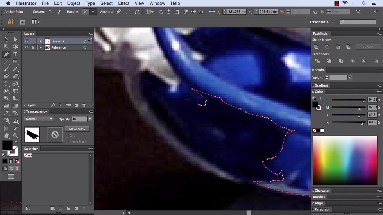 Hi there. This is Simeon for Tuts+. In this lesson we're going to go onto adding the line work shadow and applying line work to the model's clothing. In the last lesson, we completed some of the model's facial features. What we're just going to have a look at is actually introducing drawing in some of the shadows. So if we look at underneath the model's neck, we see we've got very deep shadows. What we're going to do is just zoom in nice and tight. Click on to the screen's starting point. Set the opacity to zero. And just draw these flecks in. As we can see, it is now consistent, smooth, curves because there is texture from the actual clothing and this is what gives this inconsistent shape, so it's cool to convey that. So if we just literally just curve around and we've got this little line here, we're actually gonna include some of that also. That'll be pretty cool. Just on the outside we just include that line. As you see, it's very bumpy to describe it accurately. Just draw that in and cut back now. Just come around here, along this partition, we're at end point. We're just going to stop and zoom out, move our image slightly, so it's in a nice comfortable [INAUDIBLE] we just keep going along here. Now these lines are slightly smoother, so that's the edge of the football there. Now we'll just get a nice line going onto the edge of the quarterback's index finger. And same along so we are looking out for the darkest areas here. We just take a look. If we are going to go all the way along just to cut inside and do some change of work and the main dot here and definitely underneath the name. Really, we could include this all within the shadow there because it is pretty deep. And just maybe have an outer red, later on, going along outside it, below it on another layer. As we keep our layers nicely organized. So again, we're gonna do a zoom out and look the sort of different angles that the shadowing is going now. It's not a consistent color so we can do our best to convey that, which a lot of the time, I feel, gives it a better effect. So if we go along with inside here, around the outside like so, just go back there Ctrl or Cmd+Z. Zoom out a little bit. It's always a good idea to zoom out and see where we're going. Okay and we're just going to go around here. Let me zoom out. We're just literally going to just go along here so if we just click and drag within this area here, bring around now. We'll come to this point, zoom in a little bit so we can see better. And again we're gonna go along these bumpy parts on the outside of this shape here. When it gets a bit smoother, so it's not essential to be so bumpy. Just curve along with it. Right. Okay, I am actually going to stop this shape here and continue the rest of it between these ends. And we're just gonna curve around here and cut back inside. So this enables us to keep this shape as one continuous whole shape. We'll go around this part here and literally come back around and along inside and now again, it's very similar to what we had before. We'll just, as we can see, there's a slightly lighter part here. So we'll just weave inside a little bit. Come around the edge part outside here. Now go along this line. All the way up. And again. And come down here. This is one of the probably, the biggest shadows shape you'll draw, so we just continuing being disciplined to select the darkest areas. Once we've done this, we'll be in good state to complete the rest of the linework layer having already done the outlines and now the deep shadows. Okay, awesome. I'm actually going to go back and just quick move in here. Cut back around. And again we're going to be disciplined to have a look where the darkest areas are. And create some interesting shapes. Don't draw it just exactly how we see but be disciplined to create some cool inventive shapes. Especially on the inside parts. On the outer curves especially on sort of clothing, things like helmets, where the curves would be quite regimented and precise and smooth. But in the insides where there's variations in light sources hitting different areas. We could create glued, vector, interested vector shapes. Okay, so this kind of bottom of the chin guard there. Okay, and go round this area, be nice and tight here. Again these are the areas that were just nice and tight and smooth. Now clicking and dragging to a lesser scale is what we did on the helmet. Come inside here and all the way around. Just the inside here and say straight through the darkest parts. Come on up back around to the top here and then, we'll just curve along the base of the helmet, on the bottom of the helmet. I'm just gonna zoom in so we can see a little bit better. We're gonna go on and round and complete our very large shape there, okay, and set opacity to 100. Okay, awesome. So now if we have a look we can see we've got a very nice shadow shape in there, underneath the model's helmet. Okay, so let's just have a quick look at applying shadows to the model's jersey. If we have a look at this corner here. I just want to get some nice grooves because this shirt always has different grooves in it. If you look at a T-shirt, a jersey where the darker areas are so we're literally going to draw in these areas. I'm just going run through how we do it. This shape here, a few of them to give us a nice looking finish. So if we set our opacity to zero, go along the outside here, just zoom in a tad. All right, and just go along the edge. Let's come back, we'll be a little bit tighter. I'm going a little bit too much on the outside there. So what we'll do is we'll cut back actually here. And this creates some nice smooth grooves. We want to get in the shadowing of the jersey thinly along this edge and then going back up around onto the shoulder. Nice grooves again. And then we'll go along the top here. And have a look where it cuts back and again, nice smooth grooves as we go around along. So we've been very disciplined. Just get that ripple ef