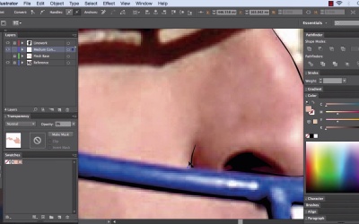 Let's now select the medium skin contour color and draw the medium contours for our vector portrait’s facial features using a combination of the Pen Tool, Color Swatches and the Eyedropper Tool.