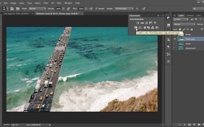 In this lesson, you'll use the clone stamp tool and adjustment layers to fix up the ocean.