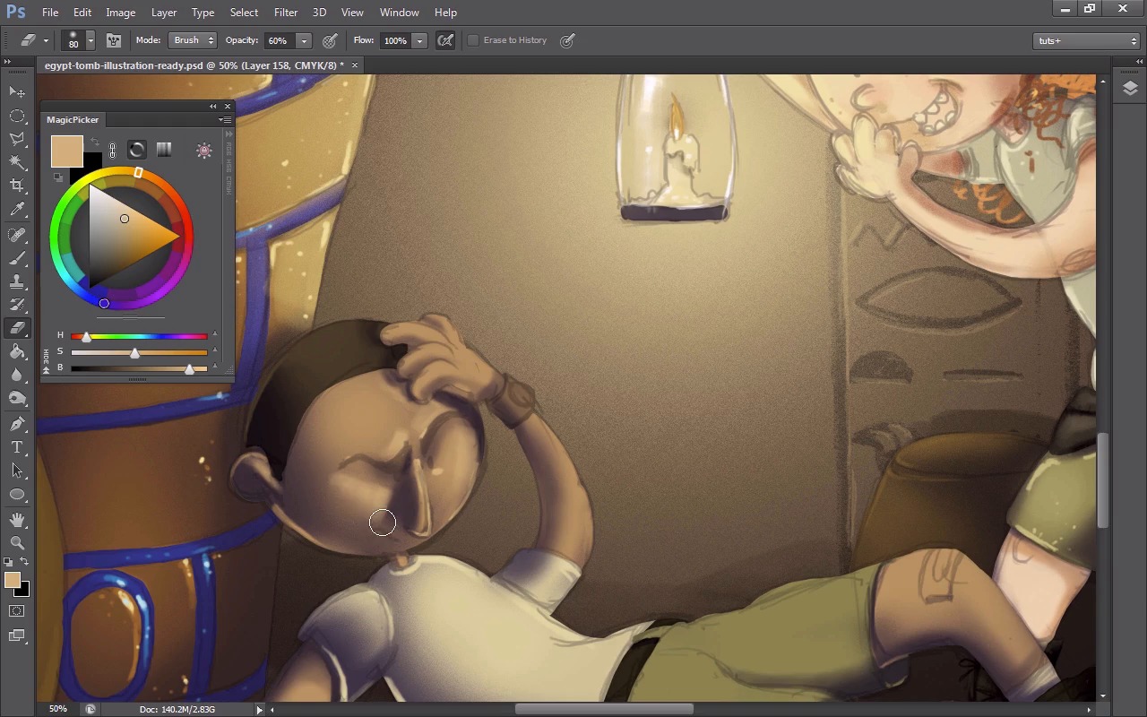 In this lesson we will be looking at painting in the highlights on the cat mummy and the boy.