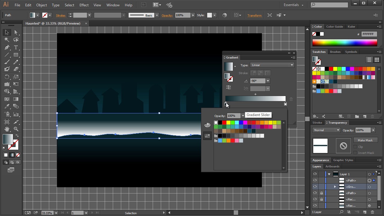 Let's polish up the midground by adding an extra ground layer, and then adjusting the colors and using gradients to bring everything together.