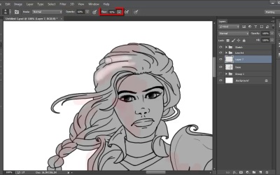 Hi and welcome to The Fundamentals of Digital Painting. My name is Nas Peters and in this video we will start painting in gray scale. Gray scale can be extremely handy when you're not that confident with colors. Or have just started to learn to paint. The reason it simplifies the painting process is because if you were to directly paint in color, you'd have to think of shading, highlighting and color temperatures and atmosphere all at once. Whereas, if you start in gray scale, you don't have to worry about which colors match, the temperature or the atmosphere. All you need to worry about is the shading and then the highlighting. Which is much easier to do when you've only got three colors to work with. We are going to create a gray base for the entirety of the character and then use black for shading and white for highlights. The other reason gray scale is very handy, is that you can easily change colors after applying them on top of the gray scale. This is trickier when you directly paint in color as shades can vary in colors as well as highlights and you'd have to adjust your shades and highlights with the change of the color. So if you're not overly confident with colors and you happen to change your mind on the color along the process of painting, it won't be as tedious to switch it out. Before we start we want to place the line art layers in it's own folder, titling it line art the same way we titled the sketch folder. Once that done, select the line art folder and set the blending mode to multiply. The blend options are on the layer panel itself, right next to the opacity options in the drop down menu which reads normal. You'll find the option multiply in this menu. Setting the line art on multiply will alow the fill color underneath to bleed properly into the lines. Leaving the line art on blend mode normal might create rough edges where the line art touches the fill color. Instead of creating a layer on top of the folder, we want to create a new layer under the line art folder. To do this select the sketch folder and then click the new layer icon. It'll create a new layer between the two folders for you. We want to pick a light gray for the base color. Bring up the swatches. They should be in the user interface already, but if they aren't, go into Window > Swatches. The panel will pop up onto your screen. The default swatches have a selection of gray color which will work fine for what we are going. I pick a light gray and then draw this color directly onto the canvas with the brush tool. Just a small circle. This is handy when you don't want to go back into the swatches panel constantly. Instead we can use the eye dropper tool to pick that color quickly off the canvas when we need it. Remember that you can bring the eye dropper tool up quickly by pressing Alt on your keyboard. Now, we could fill the color into the lines by hand. But we can also use a different method to quicken this process. Zoom out until the character is fully visible. Either by using the magnifying tool or by using the shortcuts on your keyboard, Ctrl++ or Ctrl+-. Now, select the magic wand tool and go into the line art folder. Select the lines layer. Now click on the canvas anywhere you want so long as not within the character's line art. You'll see that it'll create a selection around the character's line art. Now, use the hand tool which you can quickly access by pressing down the space bar and move the canvas around. You'll see that there's a gap between her legs which would be part of the background. So we want to make sure this is part of the selection as well. To select multiple sections, hold down Shift and click on the area with the magic wand tool you want to select on top of your main selection. Locate any other gaps that would be part of the background and select these too while holding Shift. Now, we want to inverse the selection so the character is the one that is selected rather than the background. The reason we didn't just select all the areas of the character one by one is because that would have been a much slower process and the line art would not have been included in the selection, which would create rough edges along the lines where the gray will appear. By inversing the selection, the entire character becomes selected, the line art included. To inverse the selection, go into Select, and then click on Inverse in the options that appear. Now the character is the one selected rather than the background. We are now going to contract the selection. We want to do this because if you zoom in on the illustration, and look at the selection, you'll see that it doesn't touch the line art properly. There's little gaps here and there which would make for a messy color fill. So go into Select again and then Modify > Contract. The contract selection panel will pop up. Contracting this selection by one pixel is more than enough. So click Okay. The selection is now much closer to the line art, which will create a smoother and neater color fill. Zooming back out, we now want to select the layer between the line art and sketch folders as this will hold the color fill. After selecting this and making sure you've chosen the right color gray, press Alt+backspace on your keyboard. The selection is now filled in with the gray that we chose. Note that if you were to press Ctrl+backspace while having something selected, the color underneath the main one, which is the background, would be used to fill in the selection. We can now do select. Press Ctrl+D on your keyboard to do this. I always tend to zoom in a lot to get a closer look and then use the handle tool to move the cameras around so I can check the edges of the color fill along the liner and make sure there are no gaps or rough edges. With the fill color set we can start on the shading. You can of course go ahead and pick your own light source and then apply the black shades and white highlights on top of the gray fill color. Or if you'd like to follow t