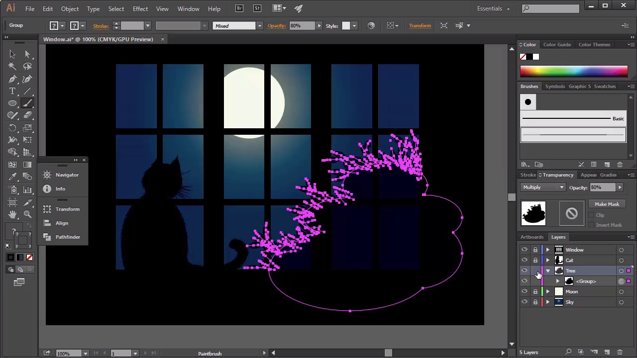 In this lesson I'll be showing you how to create the illusion of trees in the foreground using basic shapes and our handy Art Brush that we've previously created.