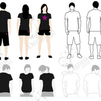 Einige Vektorbeispiele von T-Shirt-Modellen. Nützliches für diejenigen, die T-Shirt-Design erstellen. Das Set enthält einige Beispiele für die Vorder- und Rückseite des T-Shirts.