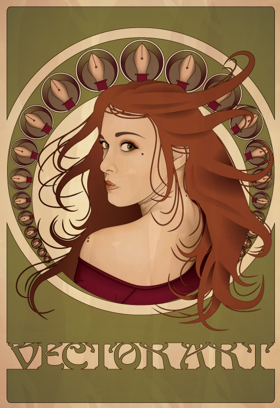 Mucha hat eine riesige Galerie eleganter Stücke, die ie stundenlang analysieren und von denen Sie sich inspirieren lassen könnten. Bevor ich versuchte, das Zeichenstift-Werkzeug auf die Leinwand zu bringen, hatte ich ein absolutes Vergnügen, die Arbeit anzustarren und automatisch darüber nachzudenken, wie dies in Vektoren erreicht werden kann. Es ist also an der Zeit, weiterzumachen!