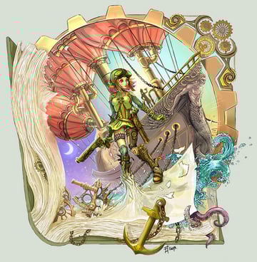 El estilo Steampunk ha sido parte de la fantasía y la ciencia ficción en el arte y la literatura desde hace unos años. Algunos defensores insisten en mantenerlo completamente basado en la ciencia, mientras que a otros les gusta añadir saludables dosis de fantasía. Sin embargo, la pregunta que parece que todos se hacen es "¿qué pasaría si X funcionara a vapor?" X puede ser cualquier cosa, desde computadoras, autos o jetpacks personales. Incluso se han hecho (y utilizado) prototipos de máquinas a vapor. Es toda una subcultura, definida por una propensión hacia la estética victoriana, la practicidad, y todo lo que funcione con vapor. Hoy te presento 80 fantásticas ilustraciones estilo steampunk para ponerte en marcha y comiences a diseñar tus propias creaciones steampunk.