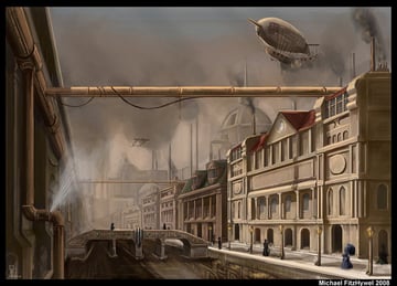 Ciudad steampunk a las 0800