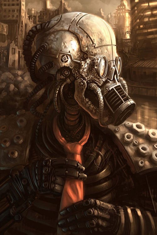 Una pieza steampunk de Patrick Reilly, que utiliza una fuerte combinación de tonos de cobre para resaltar realmente las grandes luces y las sombras de la pieza.