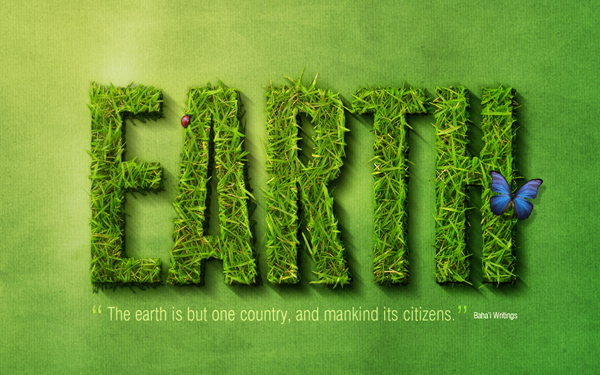 Así que primero, añadamos algo de texto extra. Aquí he añadido una cita acerca de la tierra y la unidad tomada de la fe Baha'i (¡esa es mi religión!). Amo las citas, porque significa que obtenemos tres partes a decorar—la cita, las comillas y la fuente.